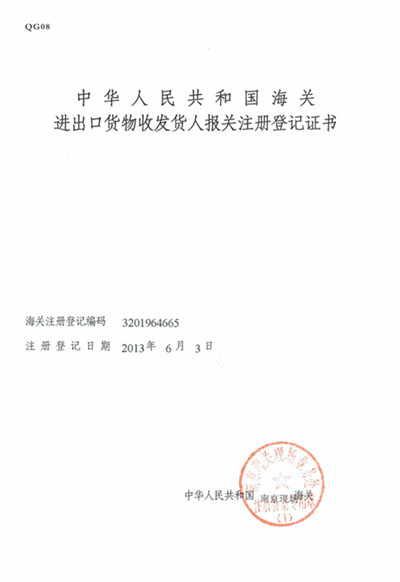 报关注册登记书